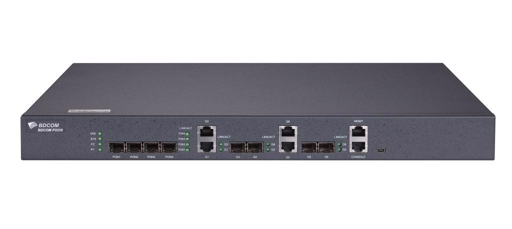 OLT P3310D je OLT uređaj sa četiri PON porta (jedan eksterni 10/100 jedan konzolni port četiri fiksna PON porta (pored OLT SFP modula),dva optička Gigabit SFP porta dva, Gigabit kombinovana porta, dva električna Gigabit porta, 90-264V AC napajanje napajanje, 19" kućište za montiranje u rack i napajanje.BDCOM P3310 OLT može da podrži simetričan PON prenos na 1,25 Gbps, efikasno koristeći propusni opseg i Internet usluge, omogućavajući provajderima da isporučuju pouzdane usluge svojim klijentima.
