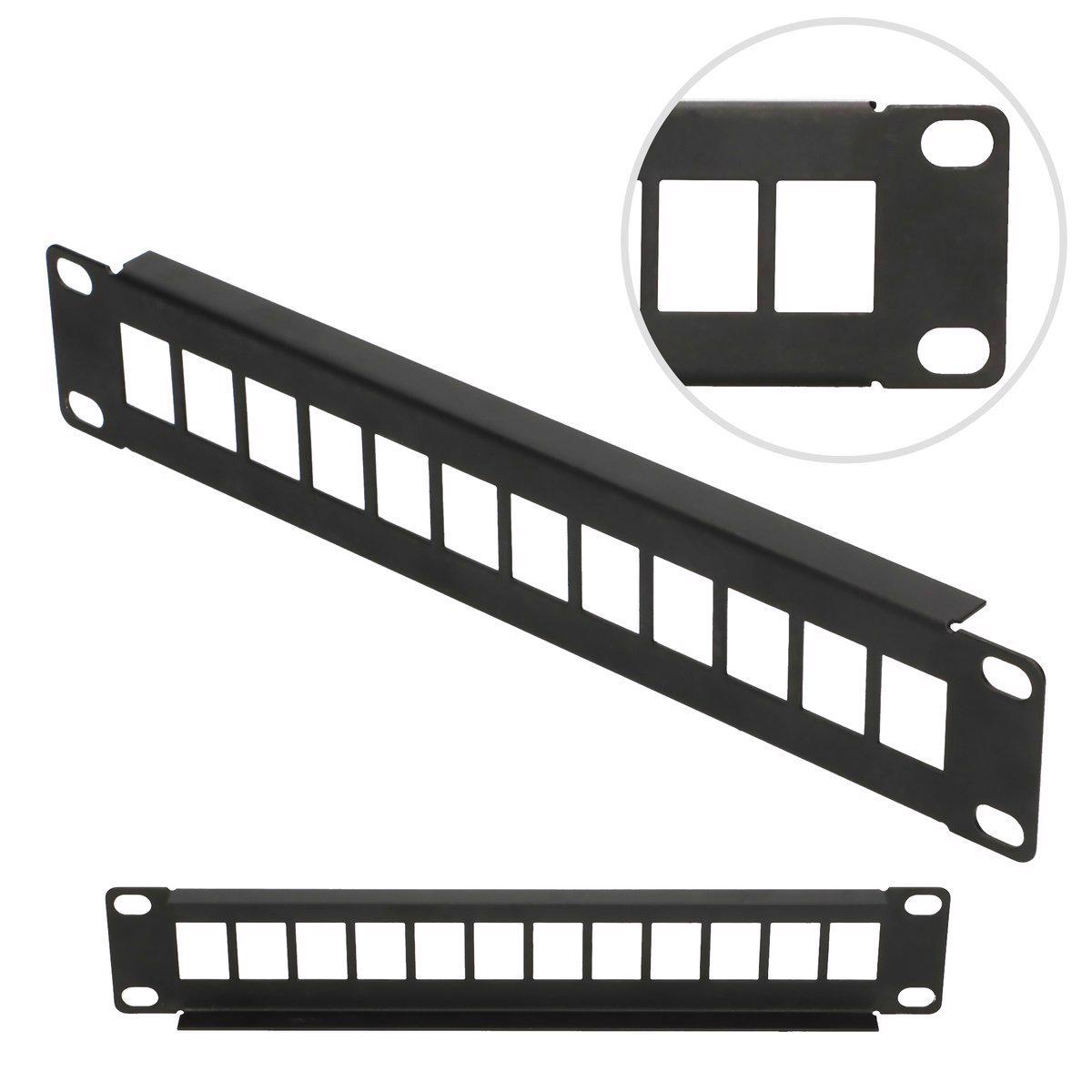 Patch panel 10" sa 12 modula vam omogućava da izgradite računarsku mrežu sa potrebnim brojem linija i povećate je ako je potrebno. Prednost ovog tipa panela je mogućnost kombinovanja bakarnih modula i optičkih adaptera različitih kategorija i tipova konektora.