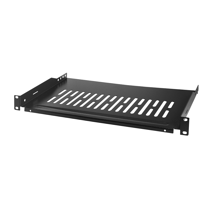 - Fiksna polica za rack orman 1U- 440x250 mm- Čelična ploča 1.2 mm, sa ventilacionim otvorima- Maksimalno statičko opterećenje: 10 kg- Boja crna RAL 9005- M6 set navoja uključen