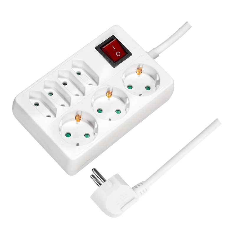 - 7 utičnica- Sa osvetljenim prekidačem za uključivanje/isključivanje- Utičnice sa sigurnosnim zatvaračem- Snaga: 230 V/16 A, 50 Hz, max. 3500 W- Specifikacija kabla: H05VV-F 3G 1,5 mm²- Dužina kabla: 5 m- Boja: bela