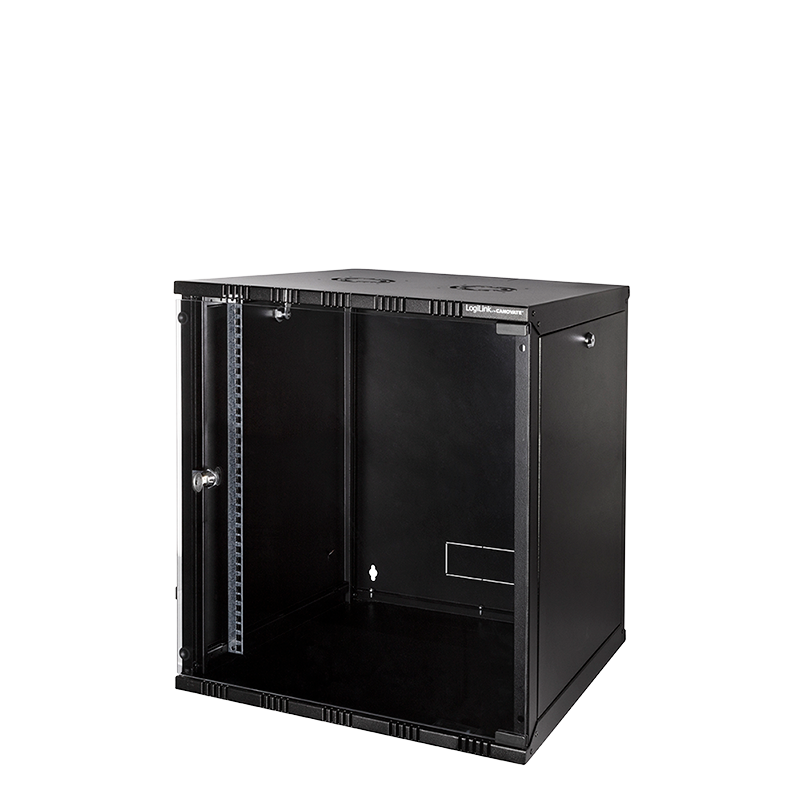 19" mrežni ormar za montažu na zid, 12U, dubina 550 mm- Čelično kućište, nosivost do 50 kg- Uklonjive bočne stranice za lak pristup- Sigurnosna staklena vrata sa ključem, ugao otvaranja 180°- Mogućnost promene strane otvaranja vrata- Dubinski podesive 483 mm (19") profilne šine- Otvori za kablove na zadnjoj strani, na vrhu i na dnu- Boja: crna, RAL 9005, plastificirano (prahom farbano)- Isporuka rastavljeno, u ekonomičnom „flatpack” pakovanju