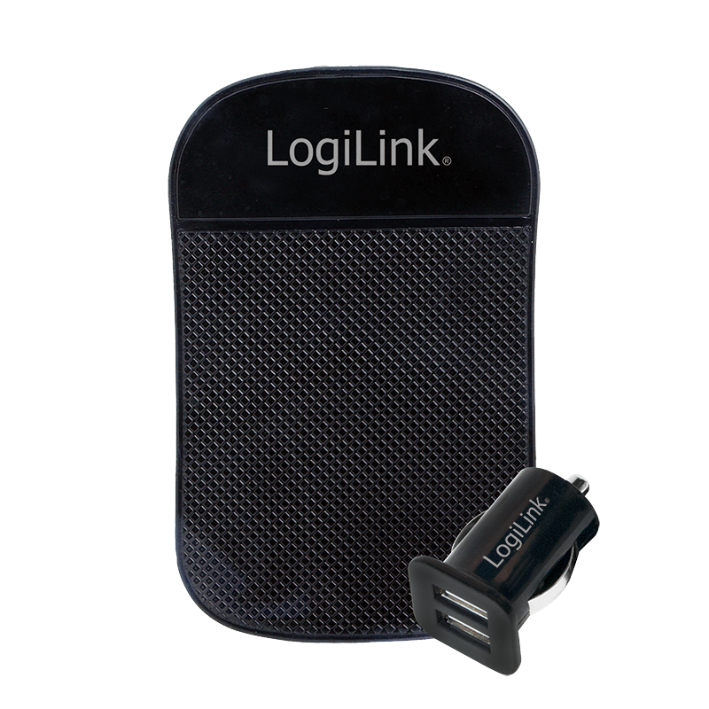 Logilink USB 2-Port punjač za auto, plus pogloga protiv klizanja, crna