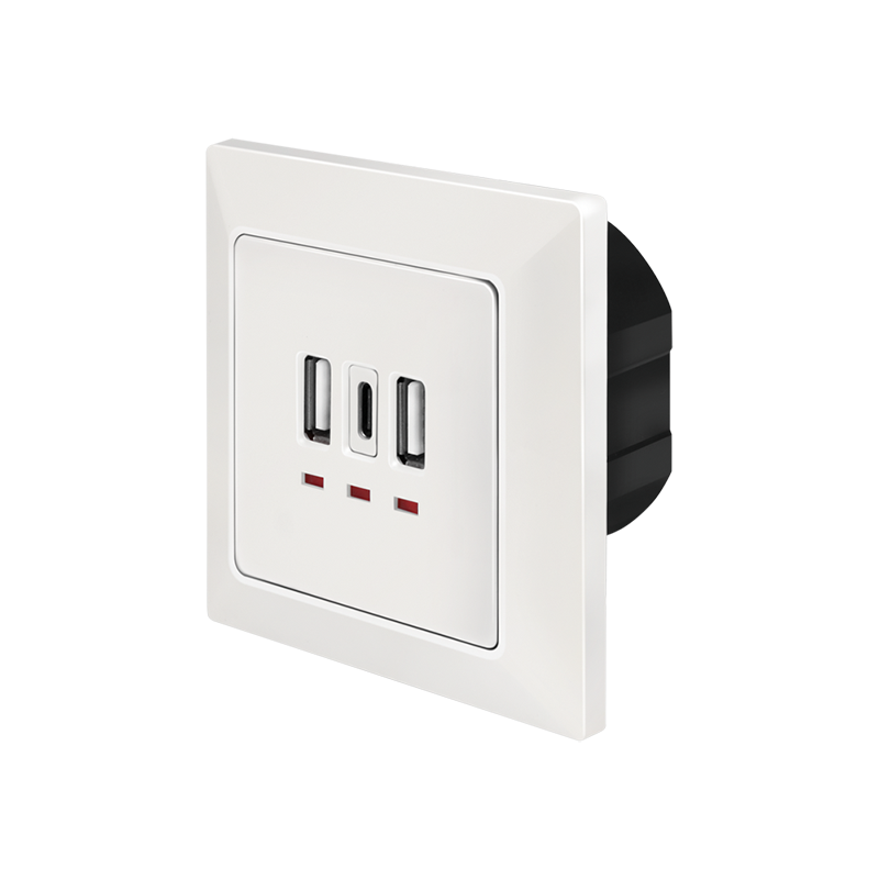 - Uzidna utičnica - 2 x USB-A, 1 x USB-C- Led indikatori- Ulaz: 230 V AC, 50 Hz- Izlaz: 2x USB-A: 5 V/2.4 A (12 W max) + 1x USB-C: 5 V/3 A (15 W max)- Jednostavna montaža- Dubina ugradnje: 30mm- Boja: bela