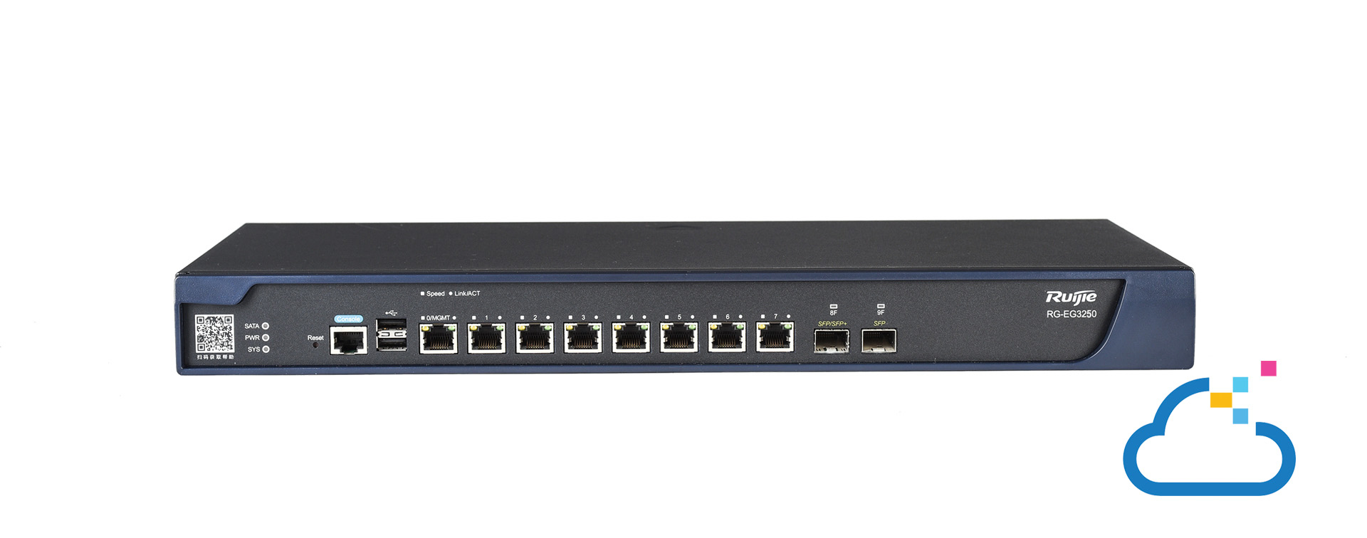 - Interfejs čine 8 Gigabitnih portova, SFP port, SFP+ port, USB2.0 i konzolni port (RS232)