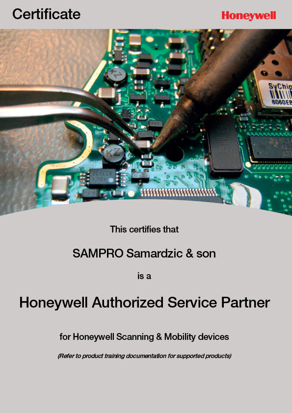 Sampro Samardžić & Son d.o.o. je ovlašćeni Honeywell platinum partner za Srbiju. Sampro Samardžić & Son d.o.o. je ovlašćeni servisni SATO centar za Srbiju. Sampro Samardžić & Son d.o.o. je zvanični distributer i autorizovani CipherLab servis za Srbiju. Sampro Samardžić & Son d.o.o. je zvanični distributer ELO touch rešenja za Srbiju.