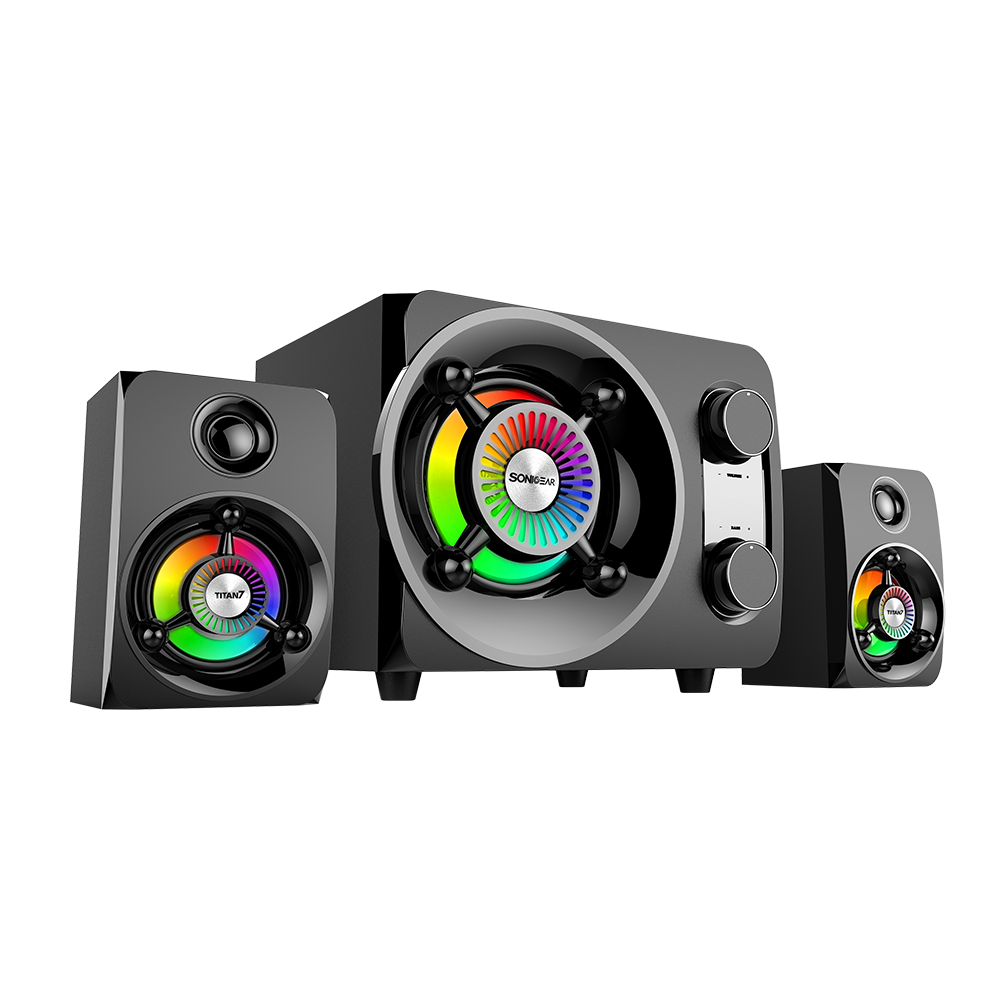 Titan7 osim zvučnog pruža i izuzetan vizuelni efekat sa pulsirajućim LED osvetljenjem u 7 boja. Poseduje 25W realne muzičke snage koja se isporučuje preko 2 satelita i jednog subwoofera. Kontrola jačine zvuka i basa se vrši preko dva elegantna kontrolera na prednjoj strani. Vaš Titan7 možete povezati preko AUX konekcije ili bluetooth-a, dok Vam opcije FM radio ili muzika preko USB-a i SD kartice uvek stoje na raspolaganju.