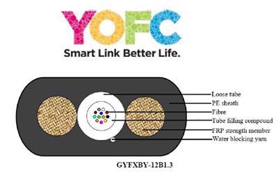 YOFC Optički kabl 12FO 2km outdoor FTTx, Flat Drop, G652D, FRP, HDPE, uni loose tube
